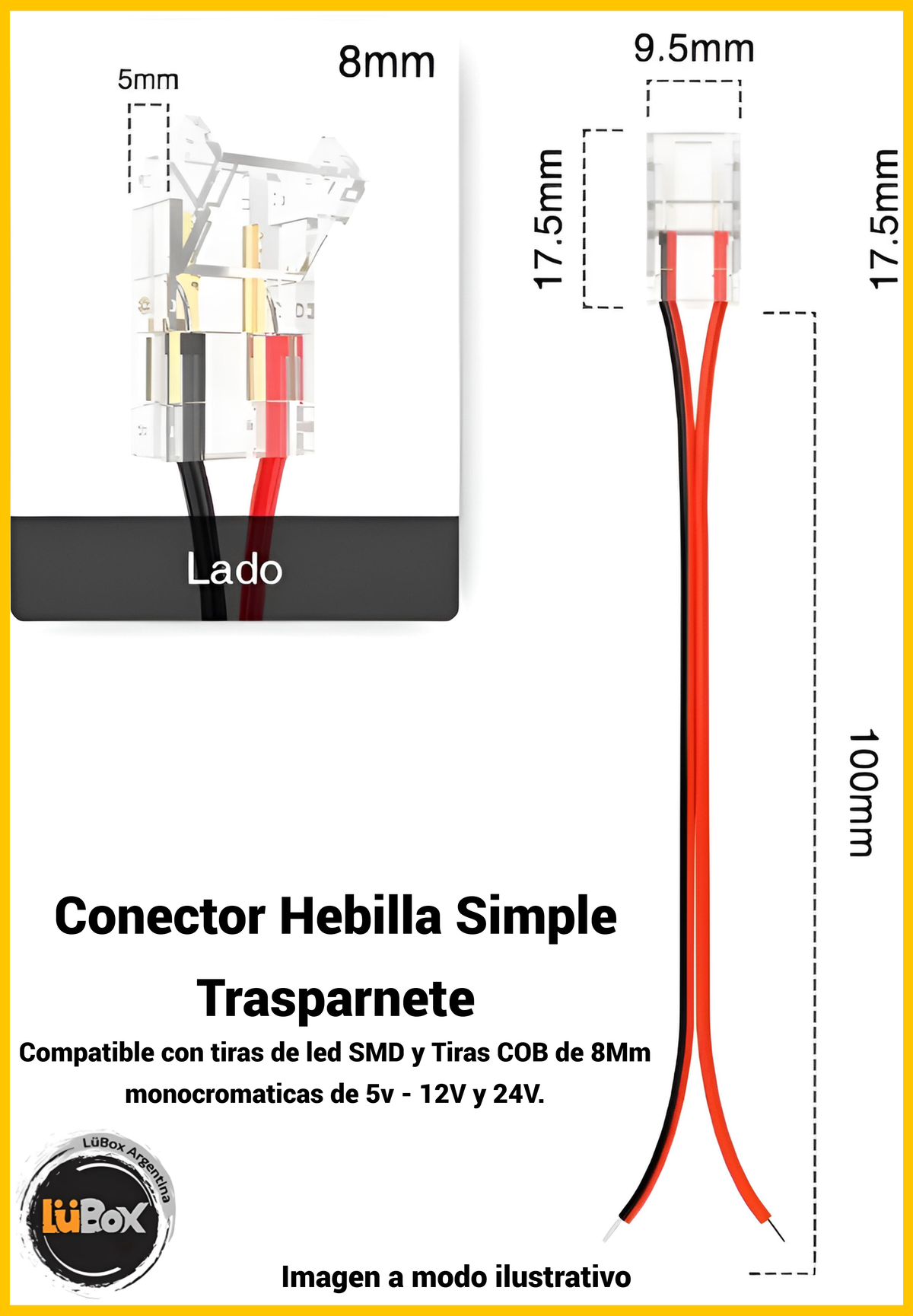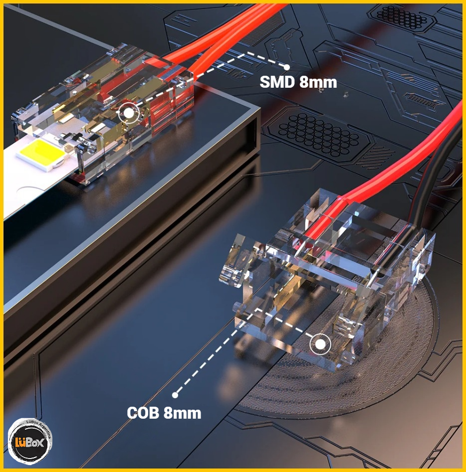 Conector para tira de led de 8mm, compatible con SMD y COB de 5v, 12v y 24v.
