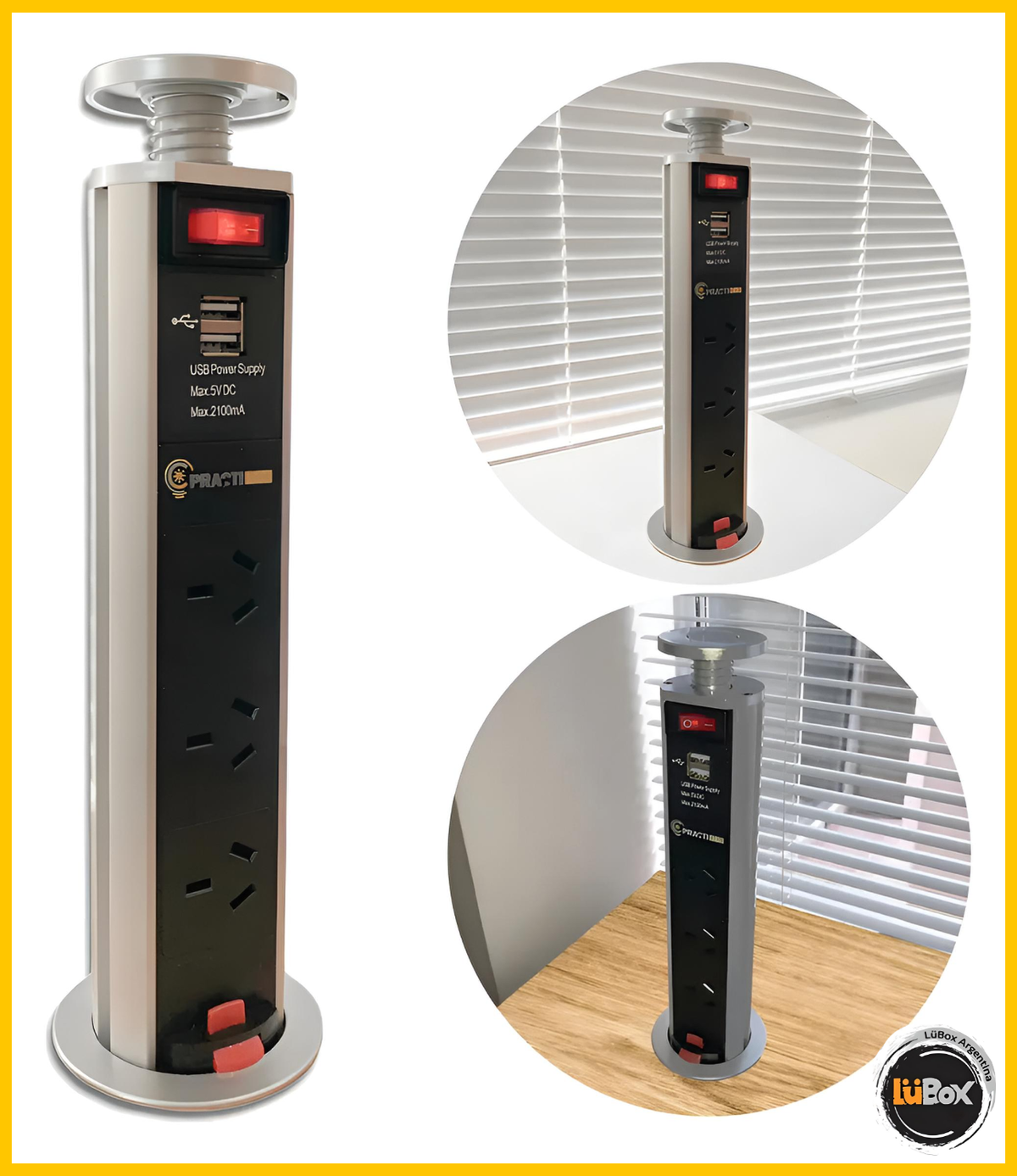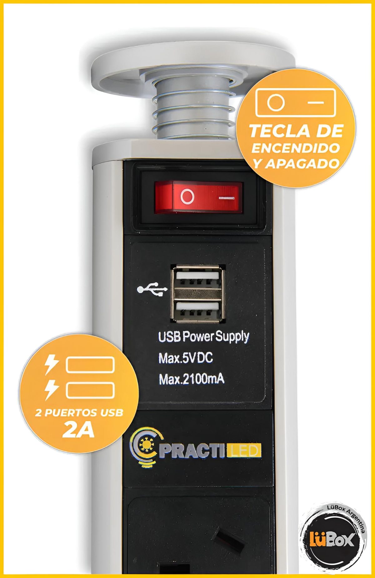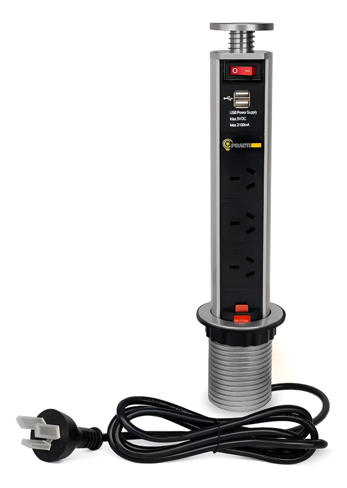 Optimizá la funcionalidad de tus espacios con la Estación de Carga Telescópica de Embutir Practiled. Diseñada para ofrecer soluciones de carga rápida y eficiente, esta estación se integra perfectamente en superficies de trabajo, cocinas y áreas de oficina, proporcionando acceso cómodo a la corriente eléctrica y puertos USB.