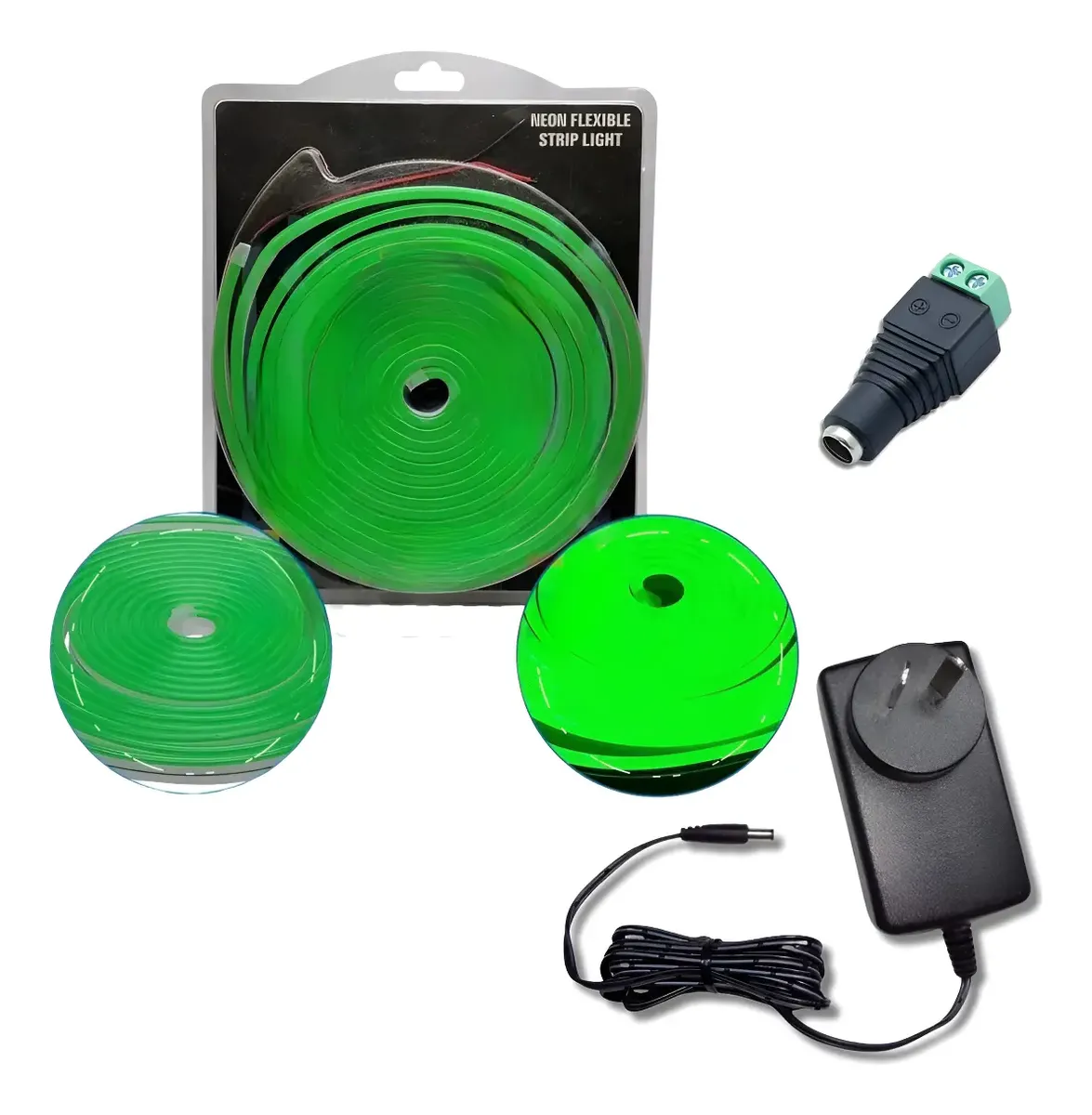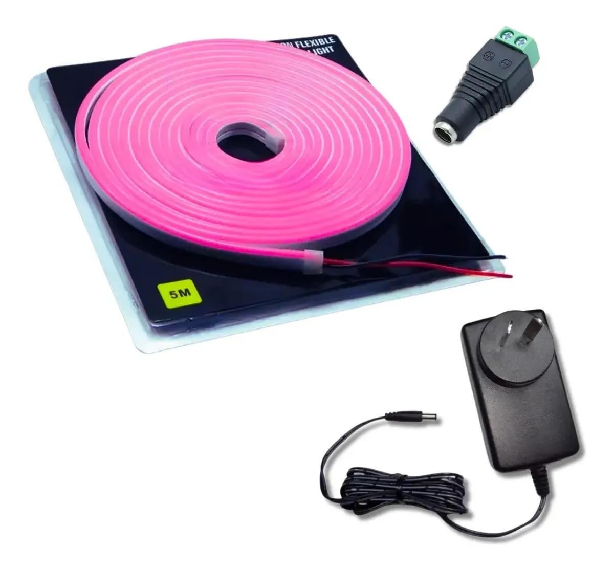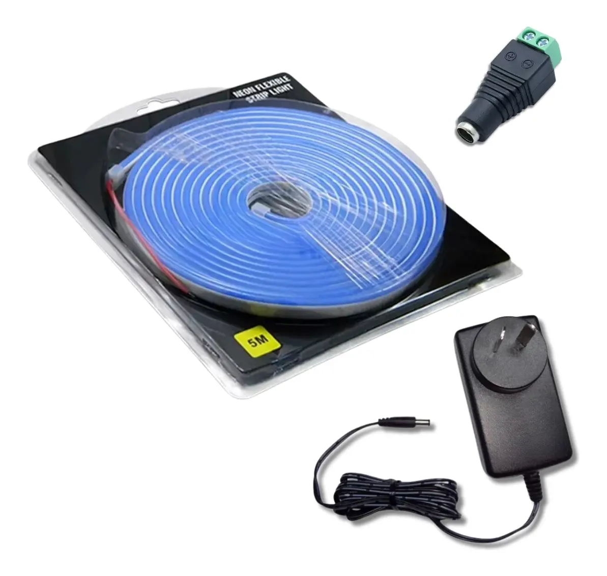 Kit Neon led Flex 6*12mm 12v Monocolor c/Fuente enchufable y conector por 5 Metros