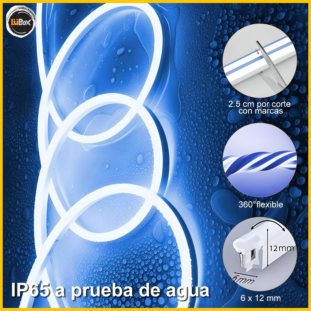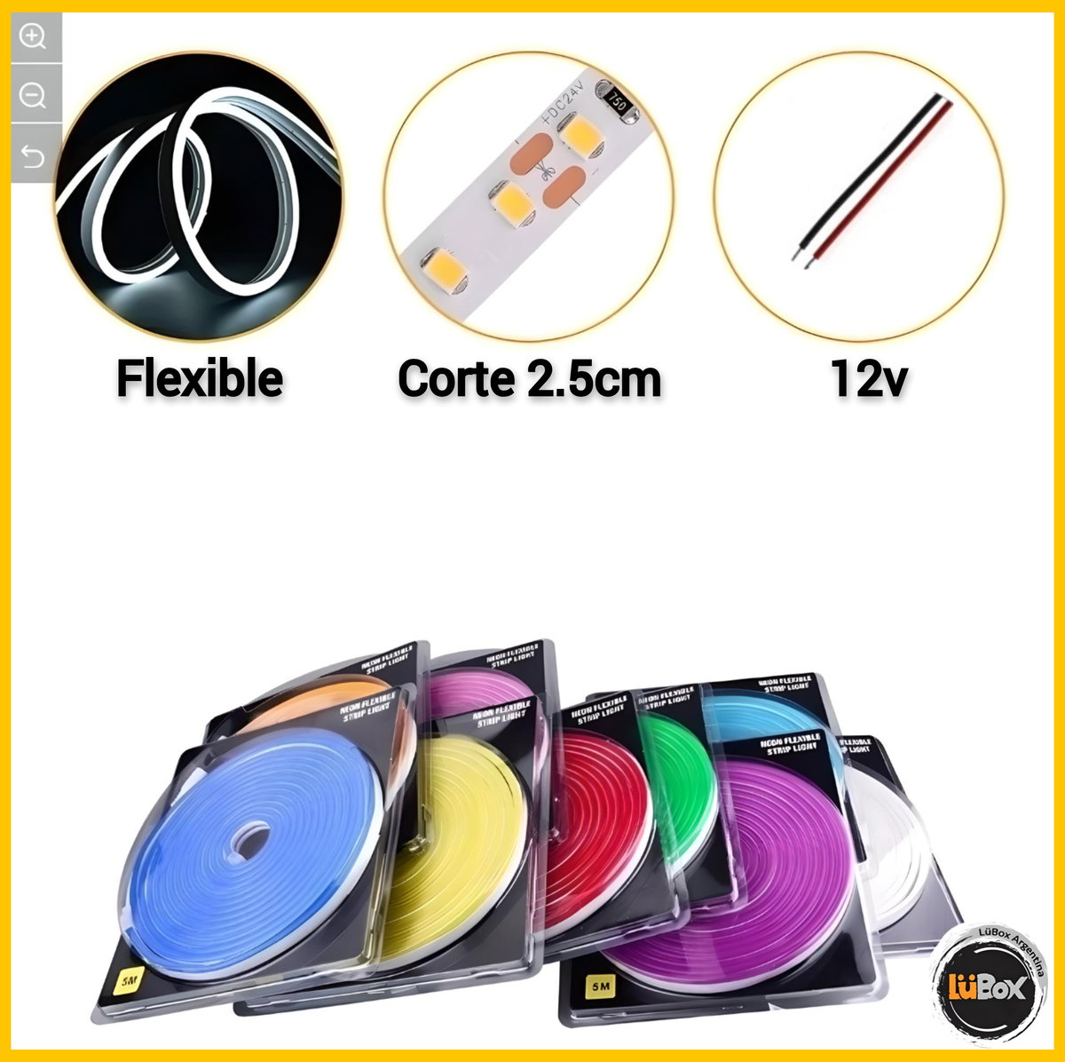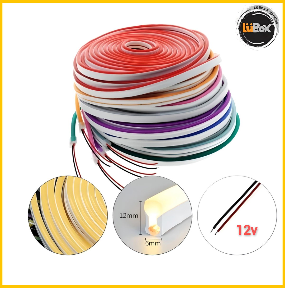 Kit Neon led Flex 6*12mm 12v Monocolor c/Fuente enchufable y conector por 5 Metros