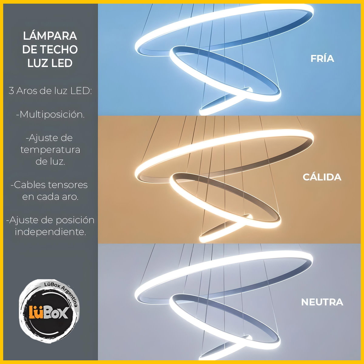 Está fabricado con aluminio anodizado de primera calidad y cuenta con un sistema de iluminación LED que proporciona una excelente iluminación, con bajo consumo energético y una larga vida útil. Podes elegir el tipo de luz que mejor se adapte a tus preferencias o necesidades: Tres temperaturas Cálido (3000K), Neutro (4000k) ,Frío (6000K), para darle el toque adecuado que vos y tu espacio merecen.