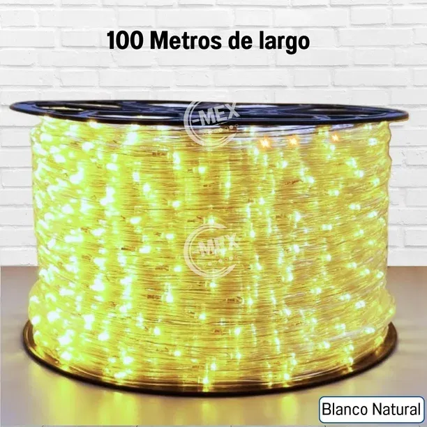 MANGUERA NAVIDEÑA DECORATIVA LUZ LED BLANCO CALIDO DE SILICÓN 100 METROS.