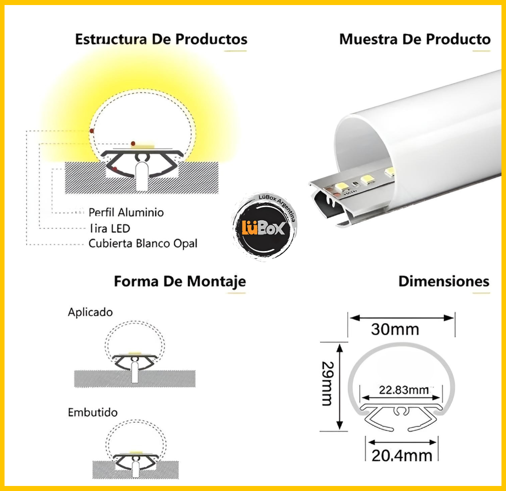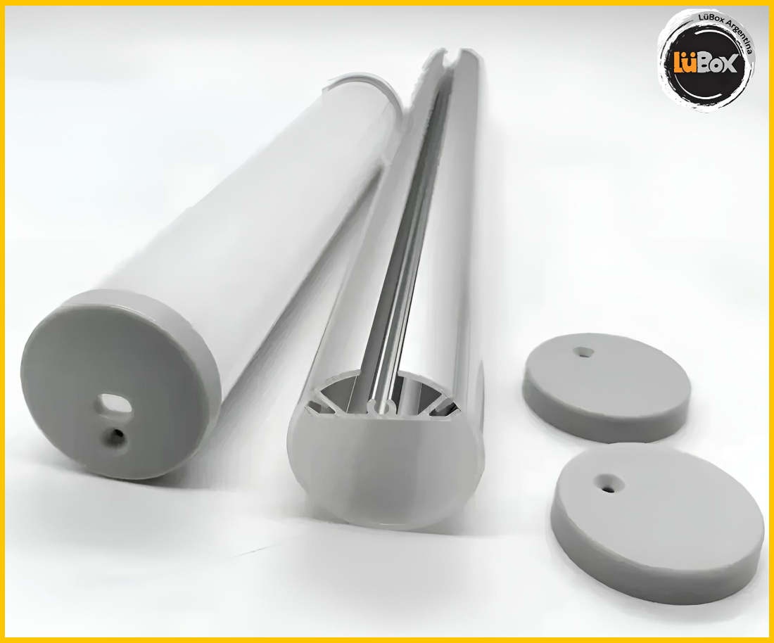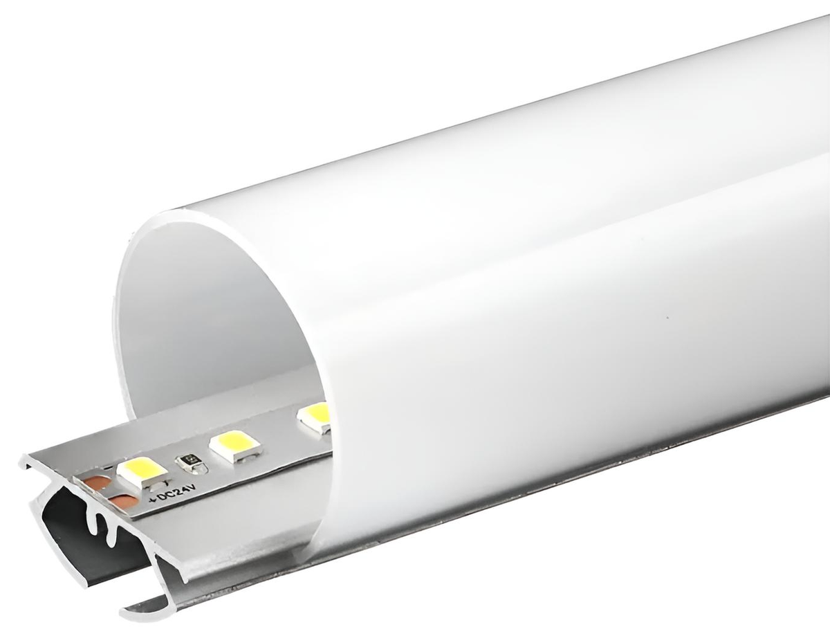Este perfil destaca por su diseño tubular redondo de 30 mm de diámetro, que aporta una estética moderna, limpia y llamativa. Es ideal para proyectos arquitectónicos o de diseño interior donde la luminaria también cumple un rol decorativo. Gracias a su forma envolvente, permite una distribución de luz en 360°, siendo perfecto para iluminar espacios amplios o generar puntos de luz colgantes con efecto flotante. Su cover opal redondo asegura una iluminación continua y difusa sin marcas visibles de la tira LED. Este modelo de perfil lineal delgado acepta dos tiras de luz LED de hasta 12 mm, tales como las tiras LED 2835, 5050 y 5730.