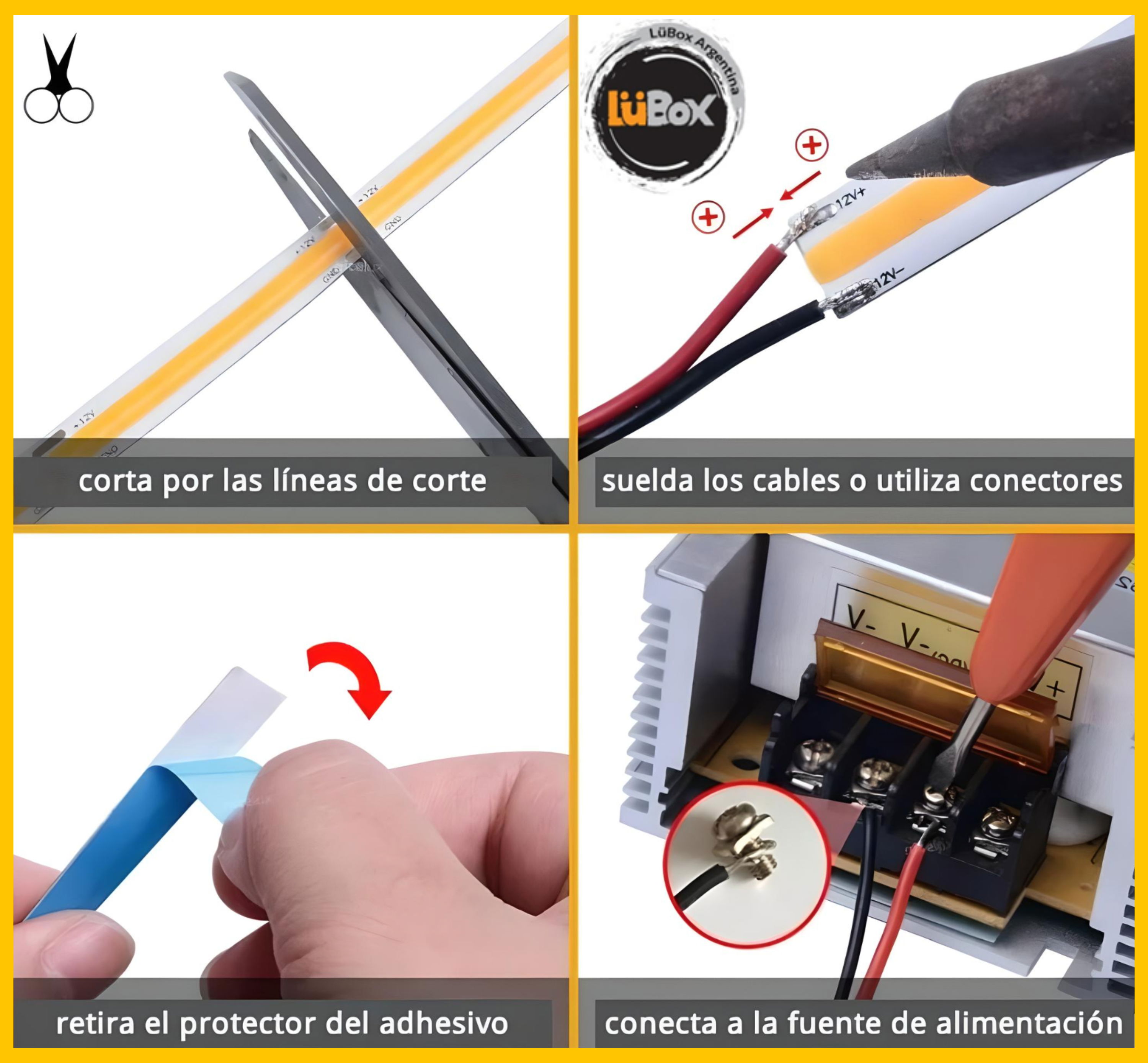 Tira led COB 320 led/Mt Interio IP20 por 5 Mts-12w-12v - 8Mm- Lubox Alic