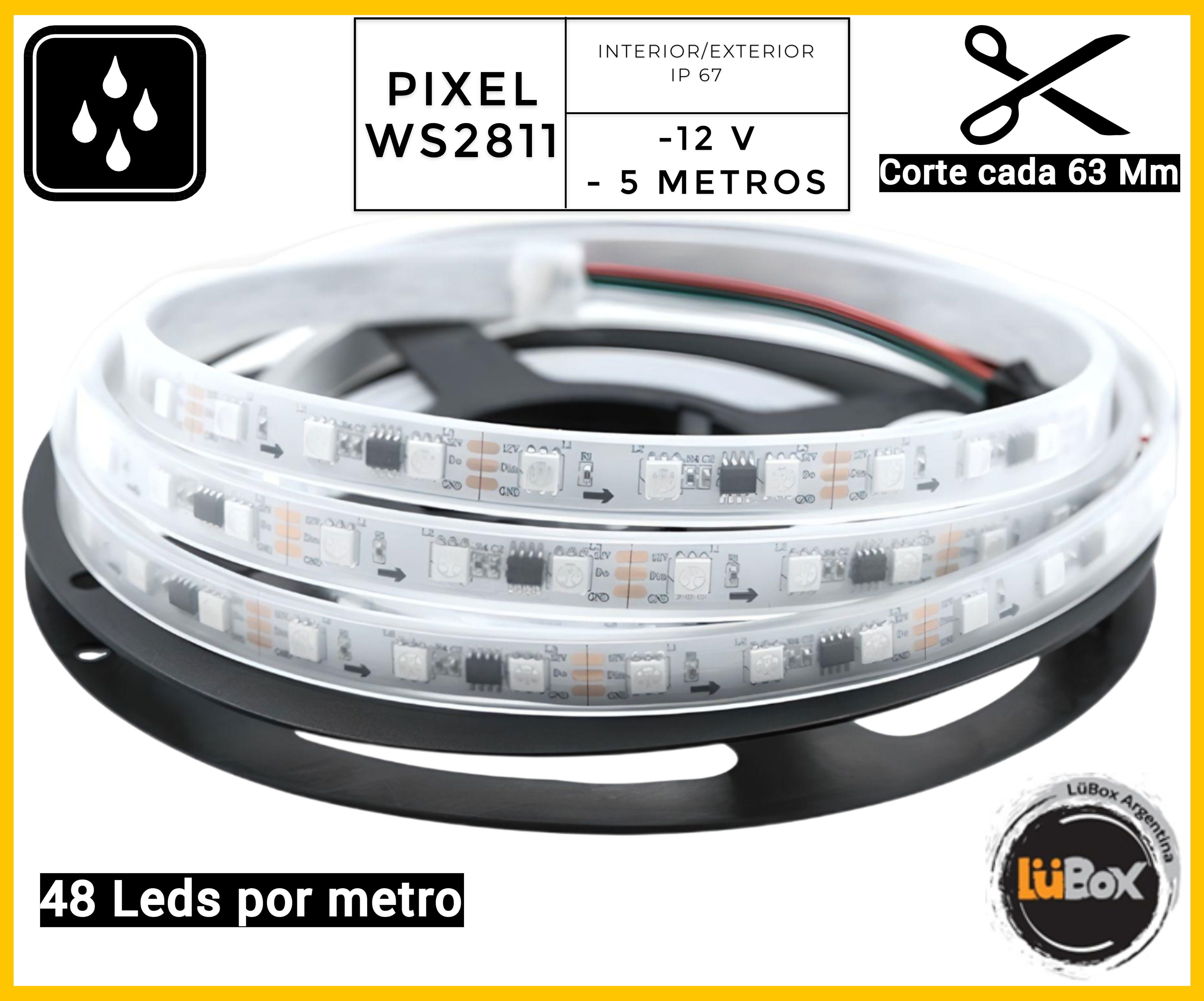 Tira Led PIXEL- 2811 - 48 L/M Exterior - 5Mt - 12V - Strong
