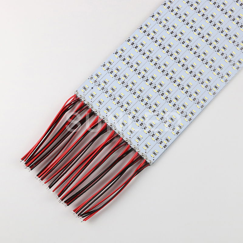 Esta plancha se presenta x 10u que se pueden troquelar en tiras de 1m con base de aluminio , se conectan a 12v, necesitando cada una alimentacion de 2a. Ademas puede ser acompañada por perfiles individuales tambien de aluminio Contiene 144led x metro.