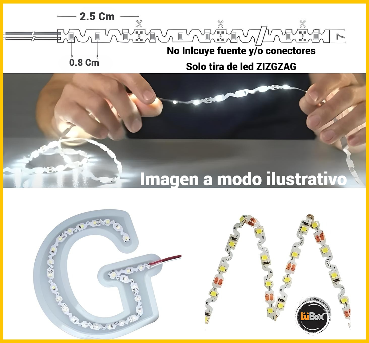 Tira led flex Zigzag 2835 120 led/Mt IP20- 9W/M - 12v - Corte Cada 2,5Cm - 5Mm - Valor por metro - M-LED