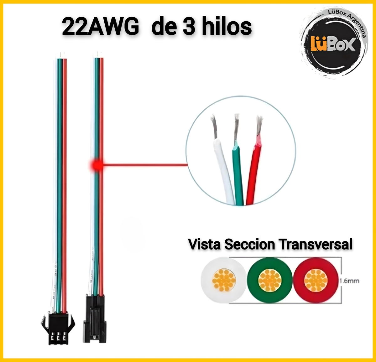 Juego Conector JST 3 pin cable PIXEL 3 hilos x 100 Unidades