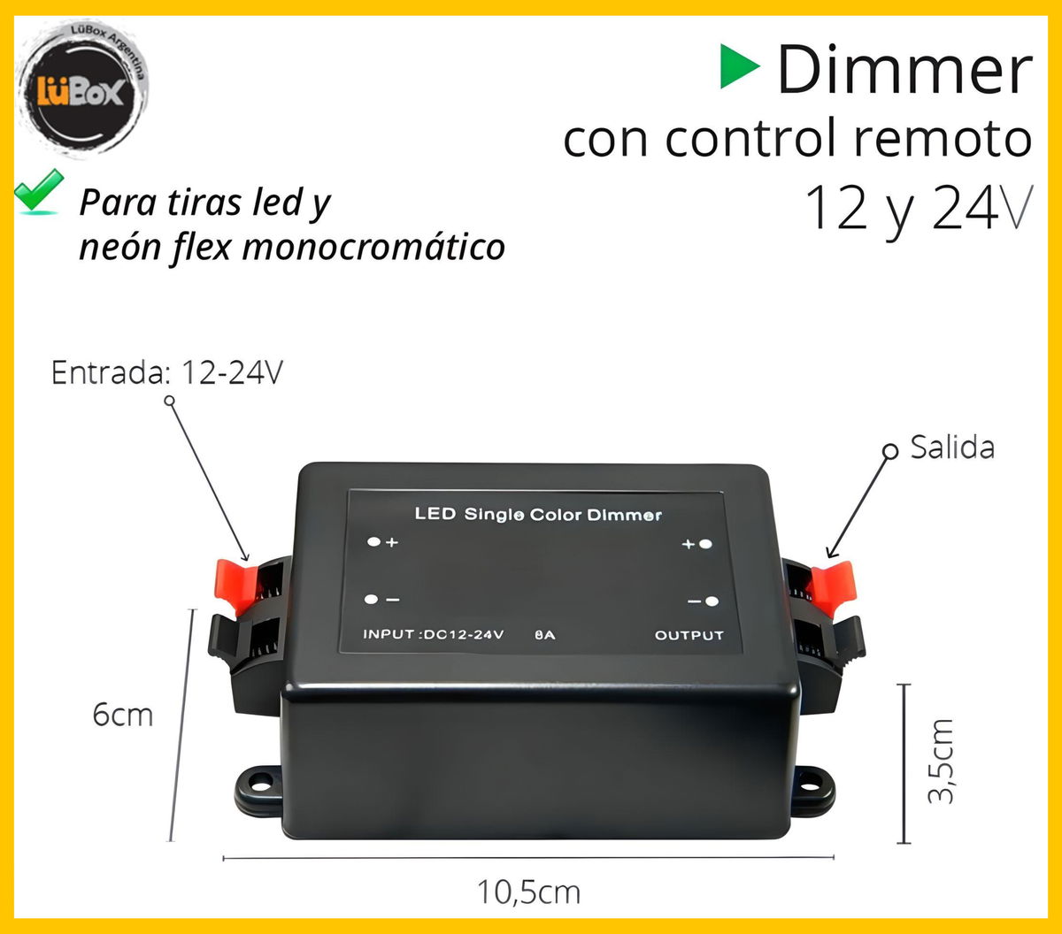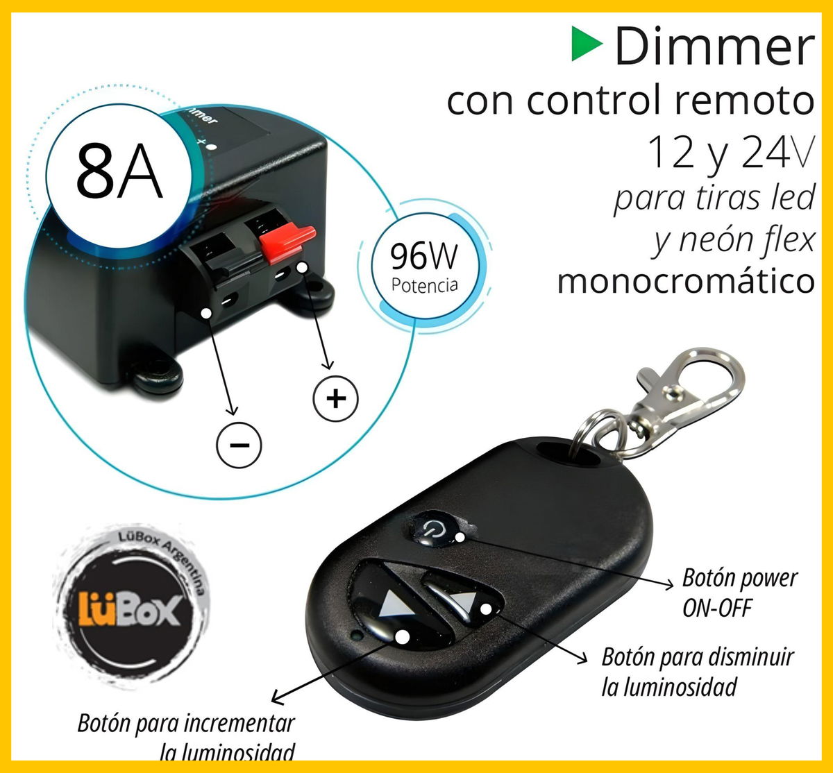 Dimmer Control Remoto Lavero 8A 12/24v - M-Led