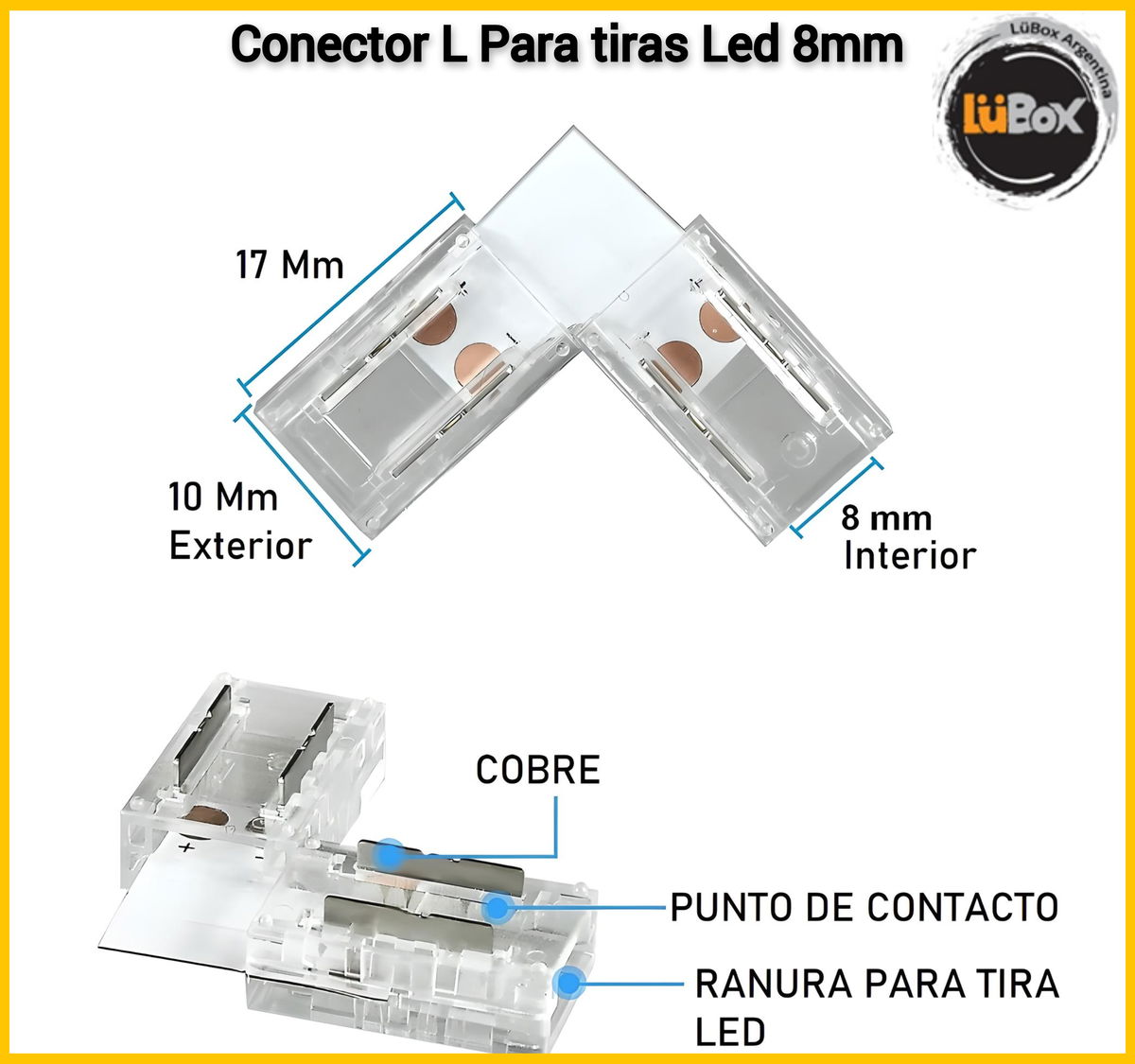 Conector Esquina "L" Transparente monocolor para tira SMD de 8mm por unidad