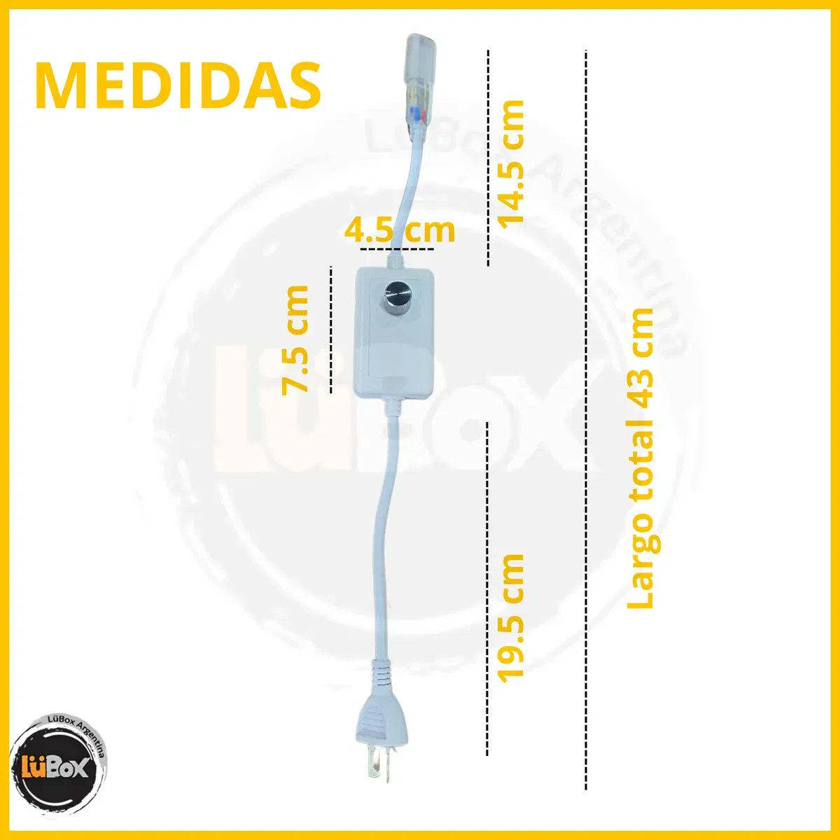 Kit Enchufe Dimmer para neon 8*16mm 220v (Maximo 40 Mts) + Tapa Silicon + Conector H