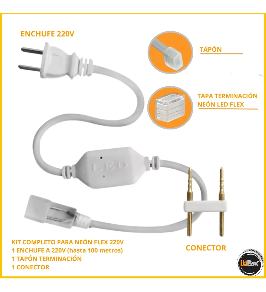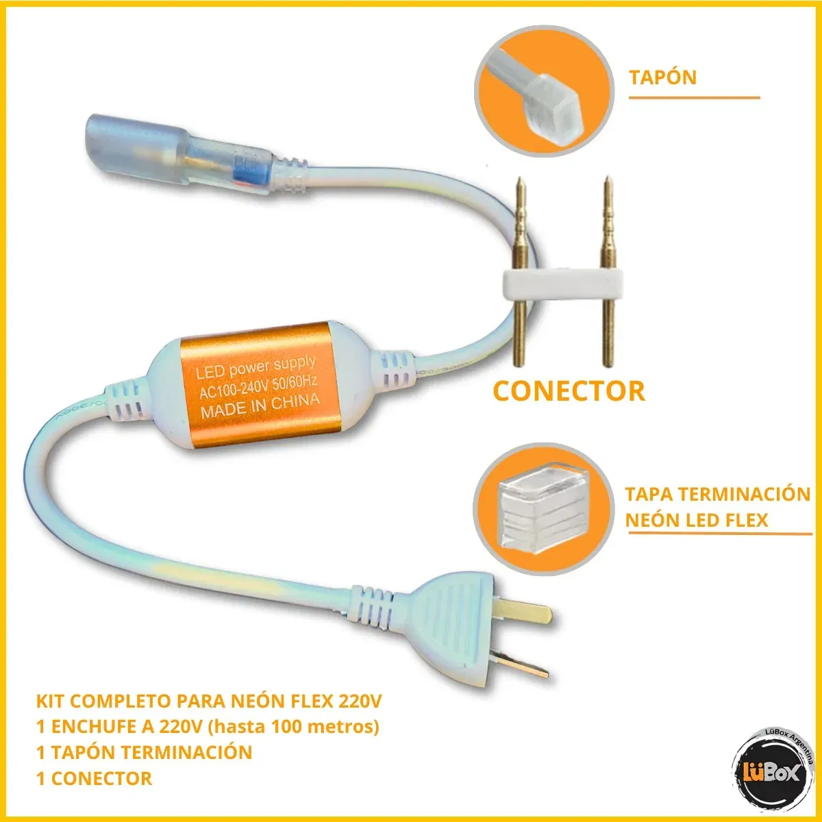 Kit Enchufe para neon 8*16mm 220v (Maximo 100 Mts) + Tapa Silicon + Conector H