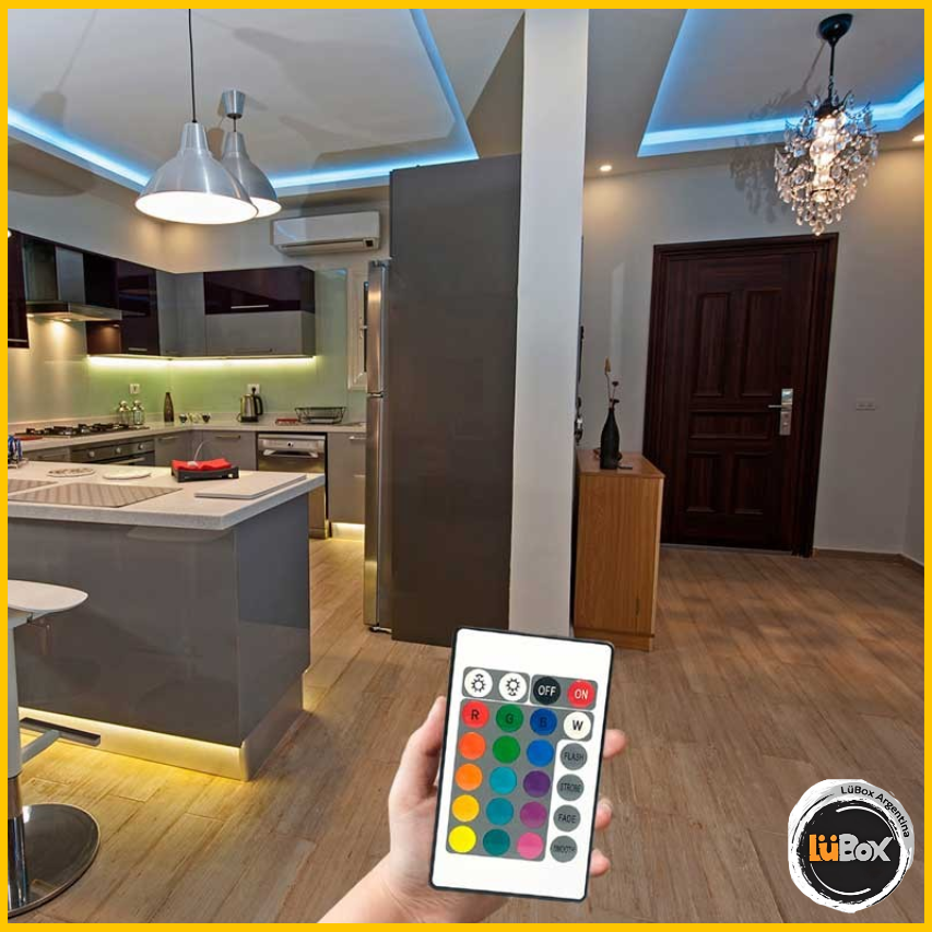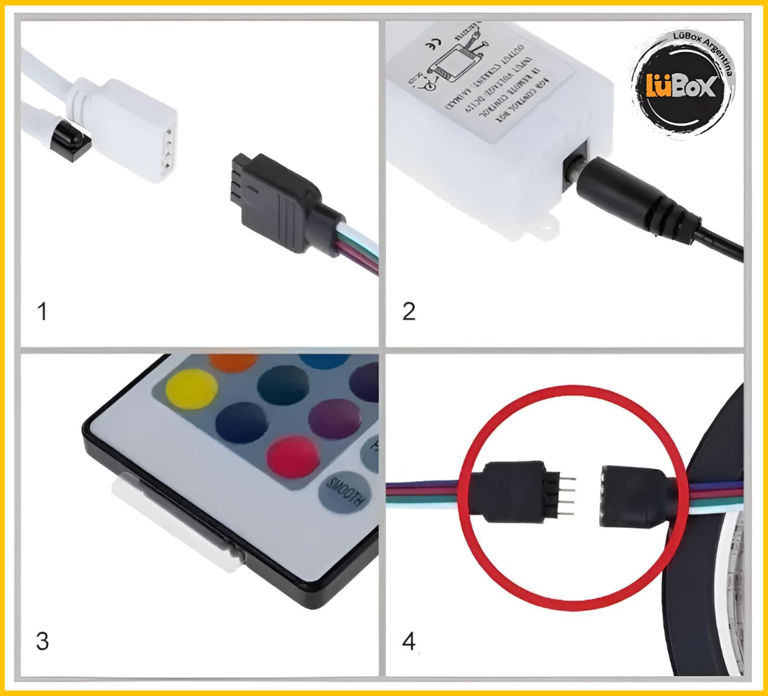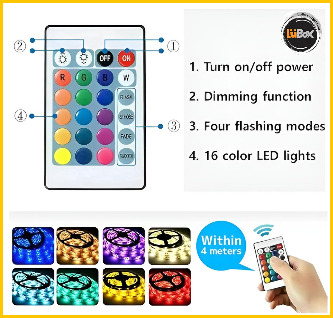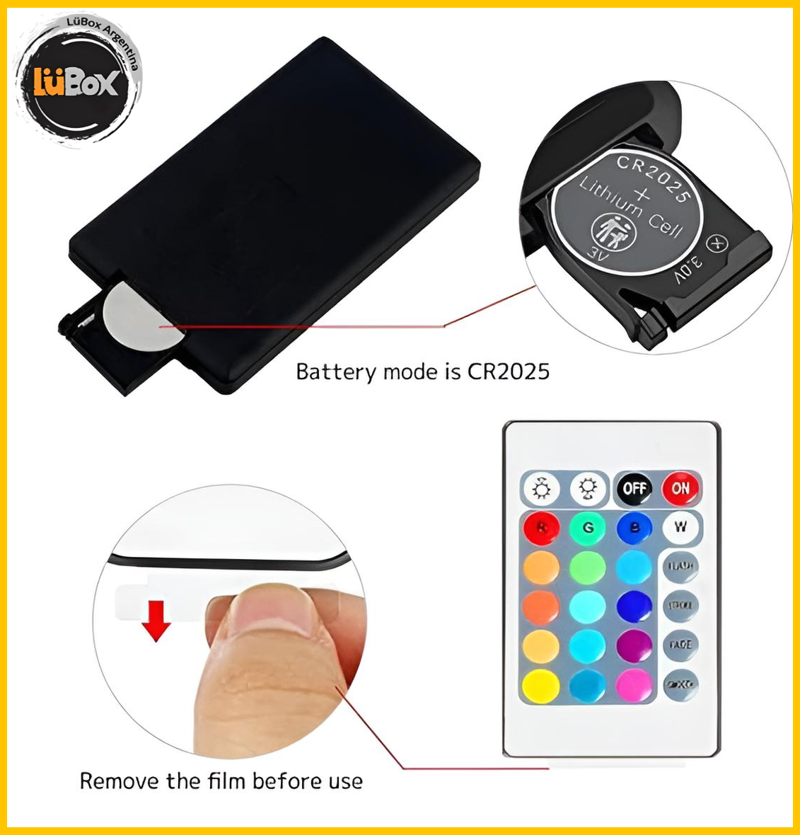 Con el control remoto se pueden seleccionar 16 colores distintos, regular la intensidad de la luz, disfrutar de 4 efectos de cambio automático, encender y apagar el dispositivo.