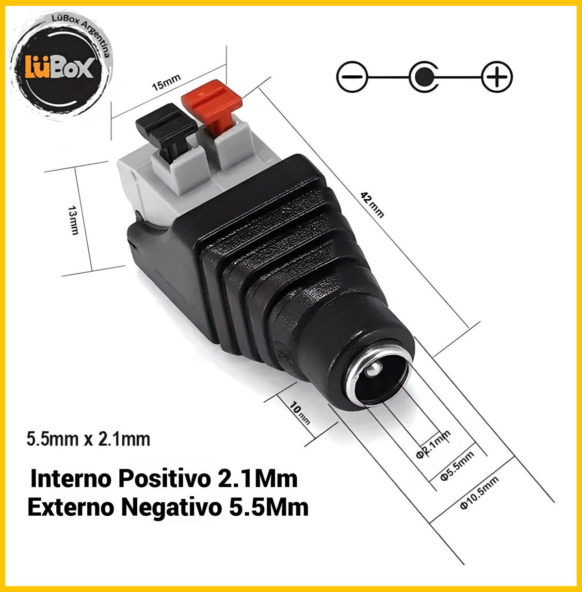 Conector ficha plug 2,1*5,5 Hembra/Macho 36w por unidad A Presion