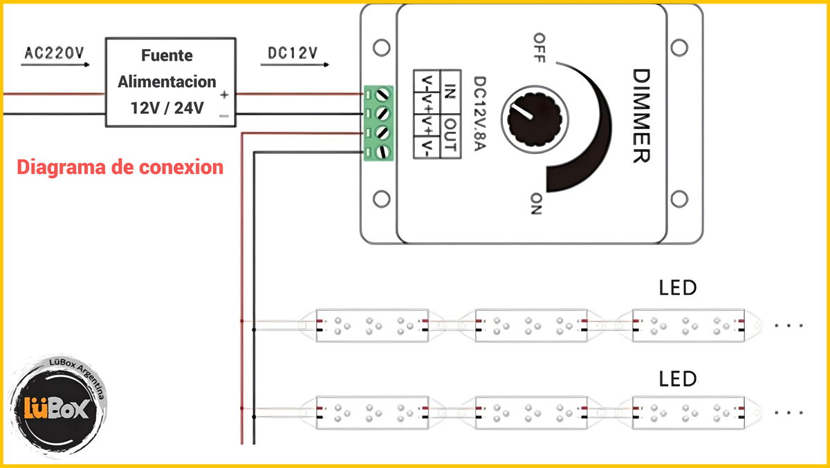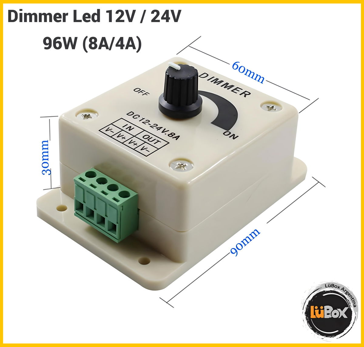 Dimmer monocromatico c/Perilla 12/24V 8A PVC 12/24v NDL