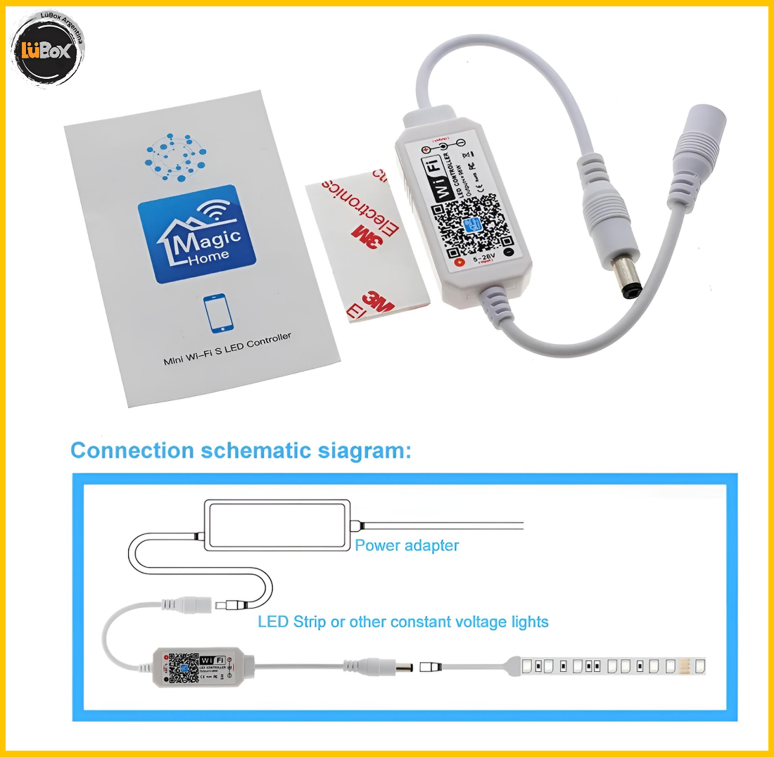Controladora Dimmer para Tira de LED Monocromatica + Funciona con APP a traves de WI-FI (Para usar con Smartphones, Tablets y otros dispositivos)