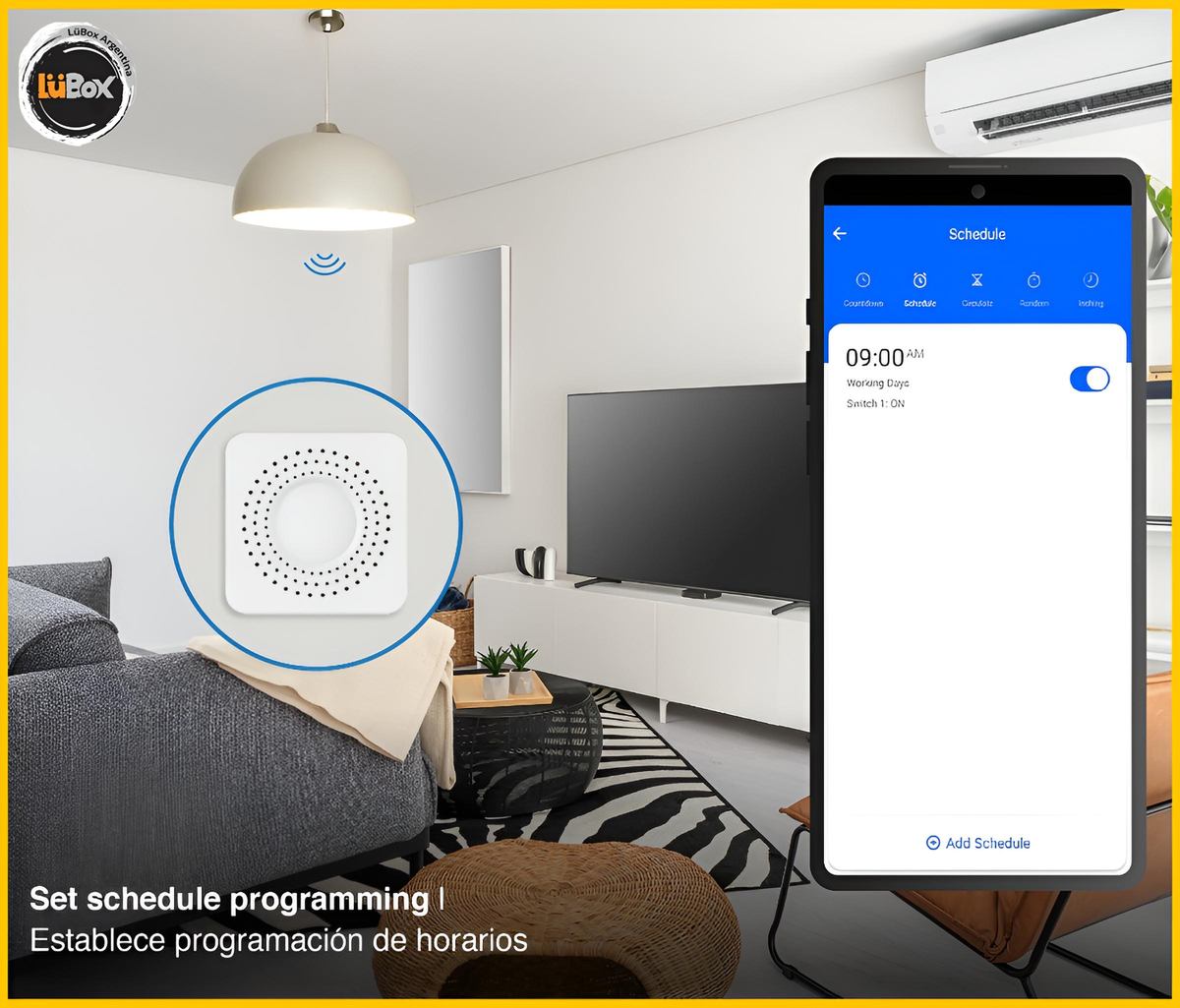 Comodidad y Eficiencia: Mejora la gestión de tu iluminación y experimenta un nuevo nivel de comodidad. Programa horarios y escenas para que tus dispositivos se adapten a tu rutina diaria.