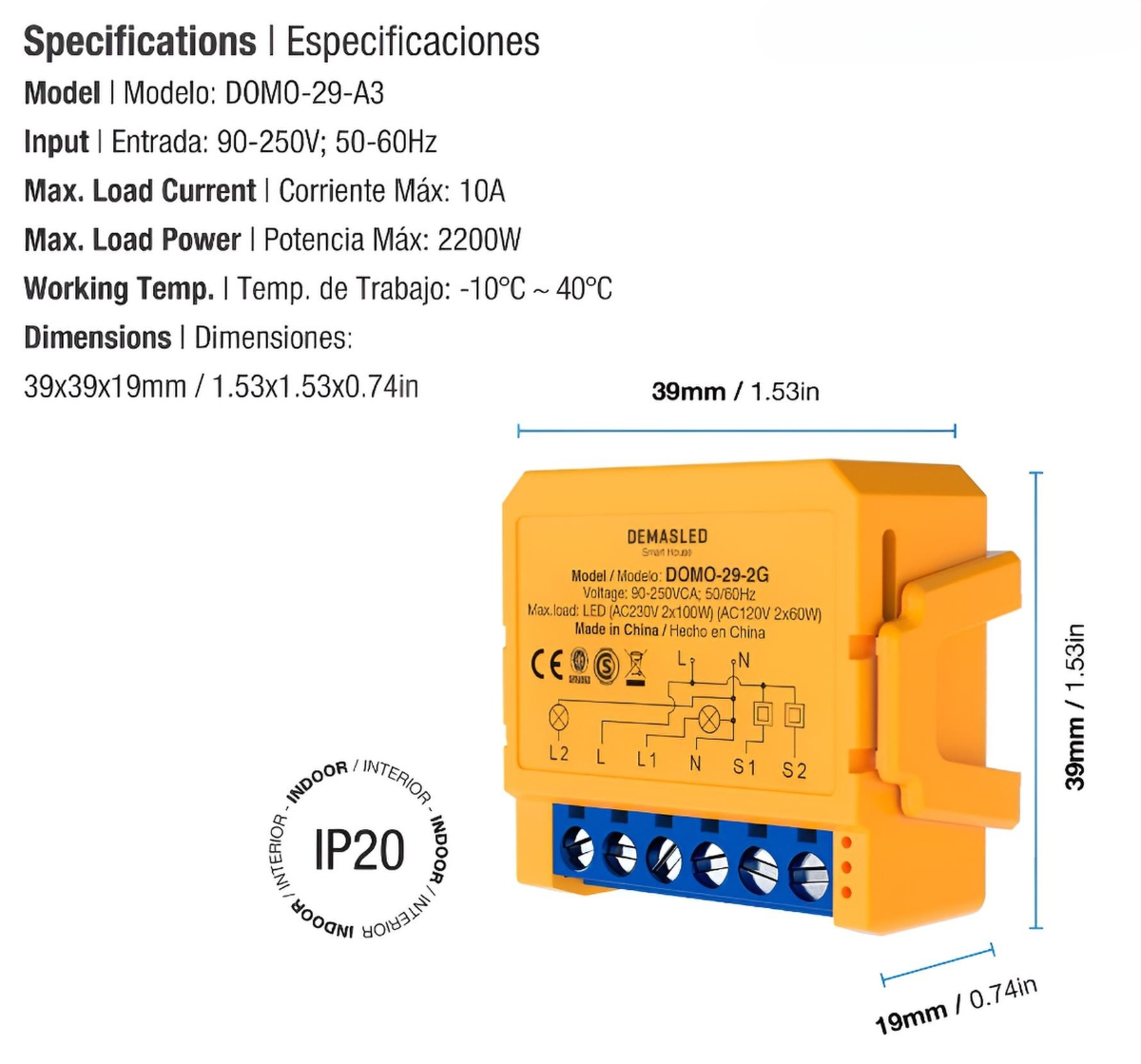 Controlá dos circuitos de iluminación de forma independiente con el Módulo Dimmer Switch WiFi de 2 Salidas (DOMO-29-2G). Este interruptor inteligente te permite regular la intensidad de dos grupos de luces LED directamente desde tu smartphone o mediante comandos de voz con Alexa y Google Home. Se instala discretamente detrás de tu tecla de pared, ofreciendo hasta 200W de potencia total (2×100W a 230V) y manteniendo el control físico. Ideal para living y comedor, o ambientes que requieren doble circuito.