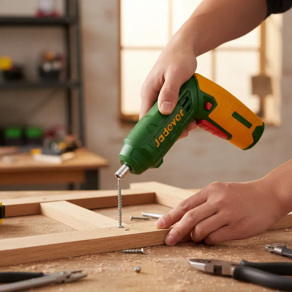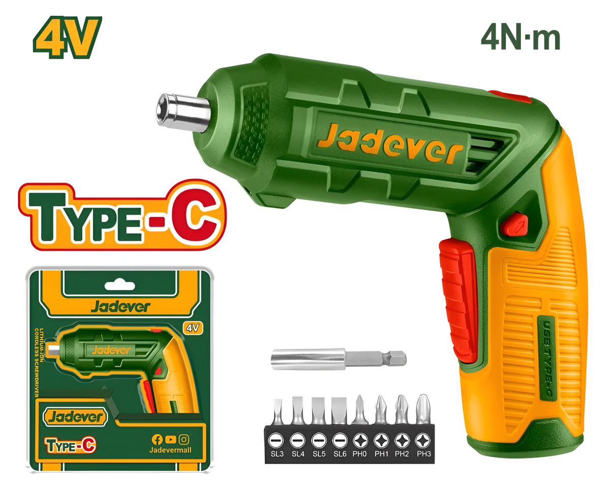 El Kit Taladro Atornillador Inalámbrico Jadever JDCV4415 es la herramienta ideal para aquellos que buscan realizar tareas de bricolaje y reparaciones en el hogar de manera eficiente. Con un voltaje de 4v y un vástago hexagonal de 1/4", este atornillador ofrece una velocidad sin carga de 240 rpm y un par máximo de 4Nm, permitiéndote realizar tus trabajos con precisión y rapidez. El mango ajustable de dos posiciones proporciona comodidad y control en cualquier ángulo de trabajo, mientras que la luz LED integrada ilumina áreas de difícil acceso, facilitando el trabajo en condiciones de poca luz. Su carga es sencilla y moderna a través de un cable USB tipo C. El diseño compacto y ergonómico del Jadever JDCV4415 lo convierte en la elección perfecta para tareas de atornillado tanto en interiores como en exteriores.