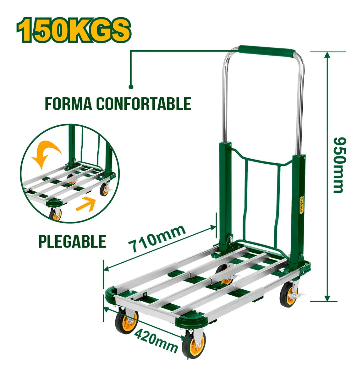 CARRETILLA DE MANO DE PLATAFORMA PLEGABLE - CILINDRO DE ALUMINIO - BASE DE ACERO 150KG - 710 X 420 X 950MM (EXTENDIDO)