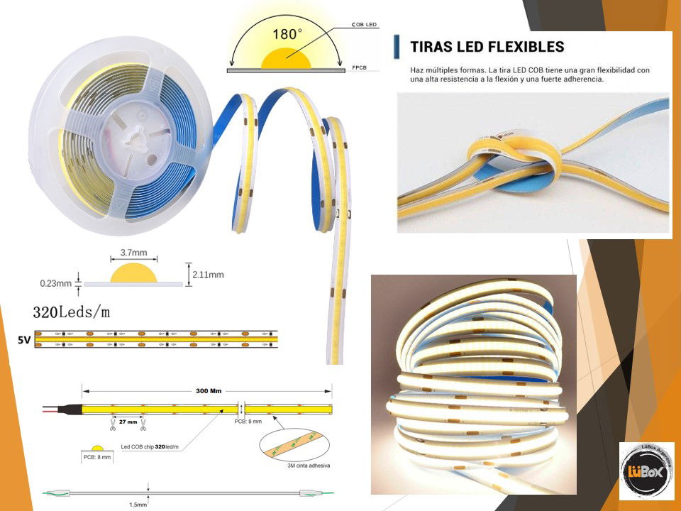 Kit Tira led COB 8mm C/Interruptor USB 5v 3 metros M-Led
