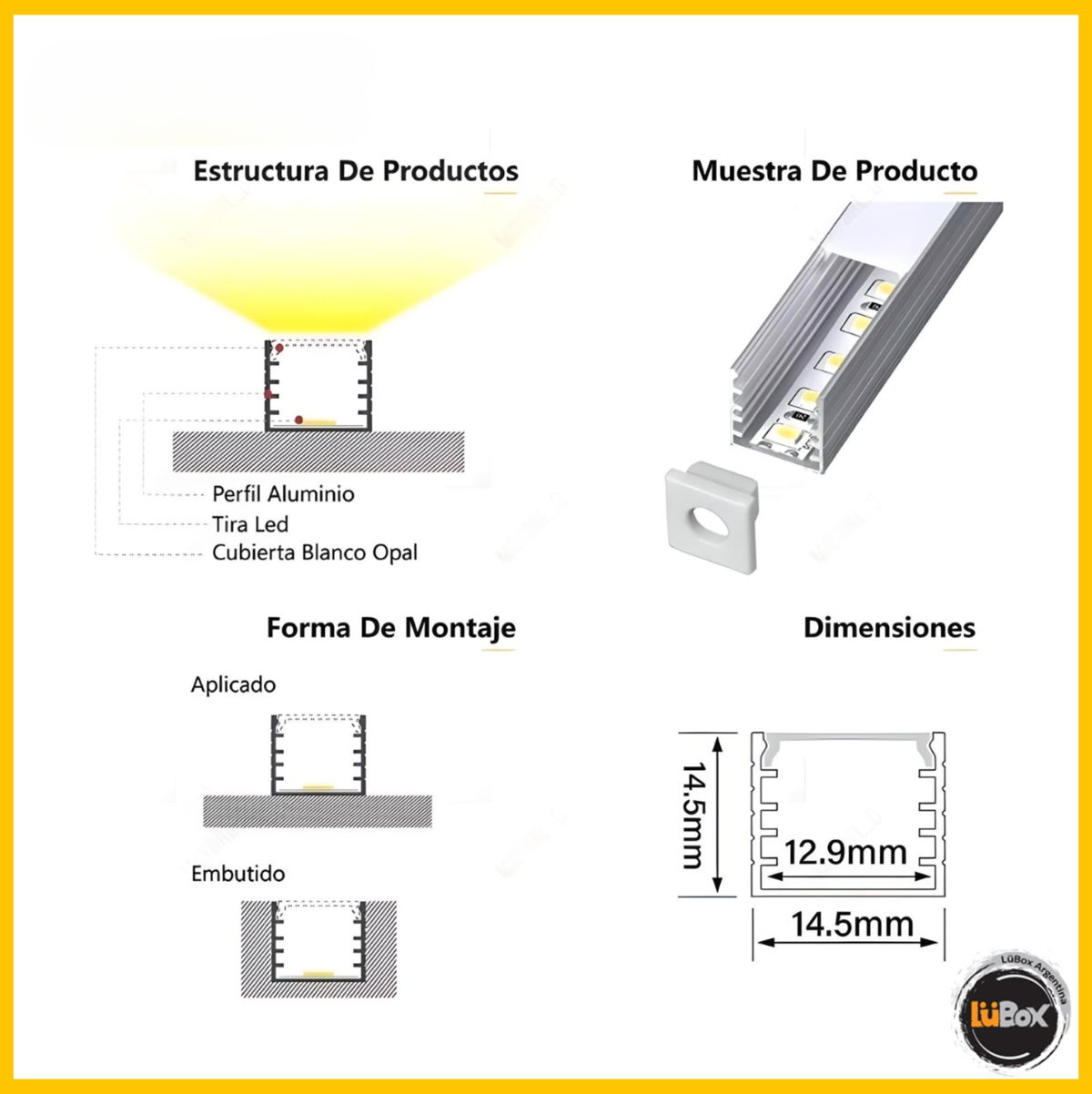 Perfil 200cm Aluminio Natural para tira led Aplicar 14*8,5 Mm