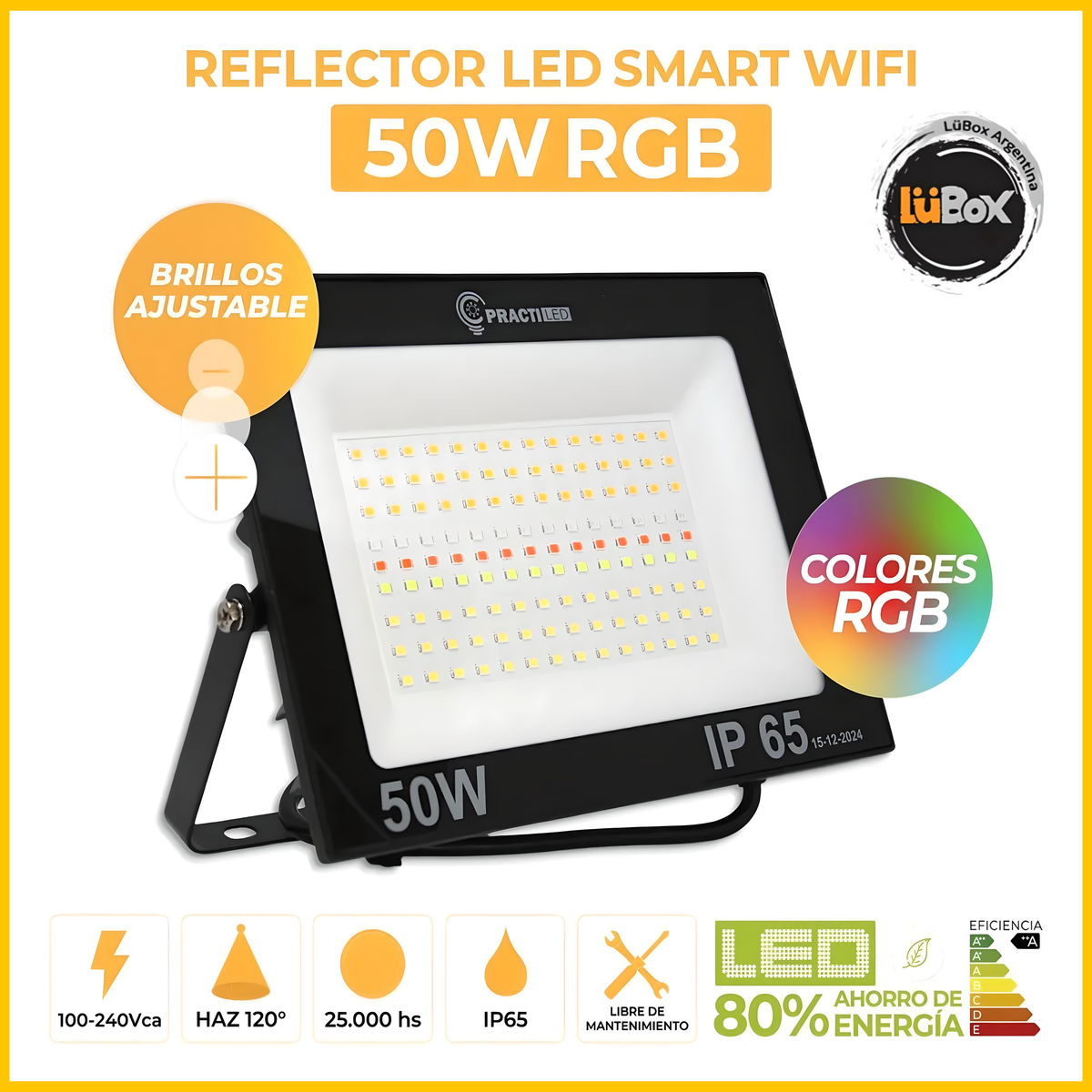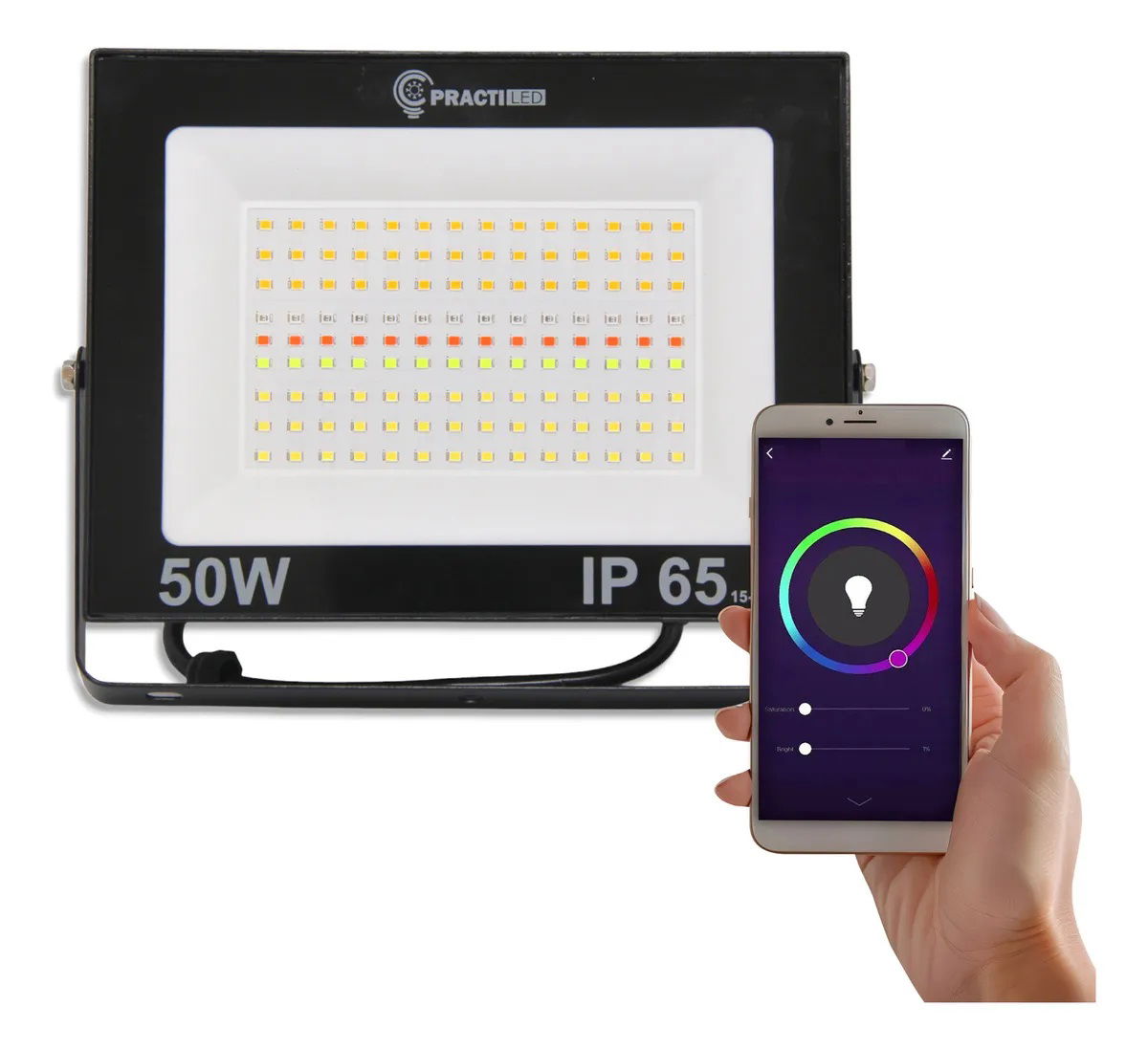 Iluminá tus espacios exteriores de manera moderna y eficiente con el Reflector Practiled Smart Wifi Inteligente 50W RGB Exterior.