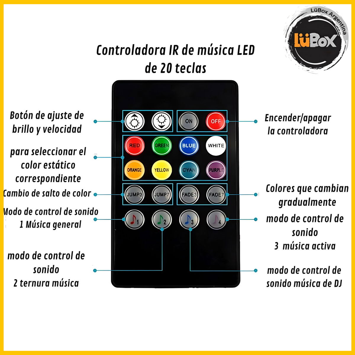 Controlador RGB 5A C/Control AUDIORITMICA 20 Keys - NDL