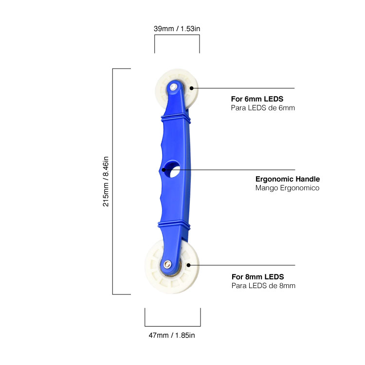 2 en 1: La herramienta de rodillo de tira tiene dos ruedas diferentes con diseño de ranura en forma de U, perfecto para evitar daños a las cuentas LED. La rueda pequeña es adecuada para tiras LED de 6mm de ancho y la rueda grande es adecuada para tiras LED de 8mm de ancho. Puede ayudarte a hacer el trabajo mejor y más rápido.